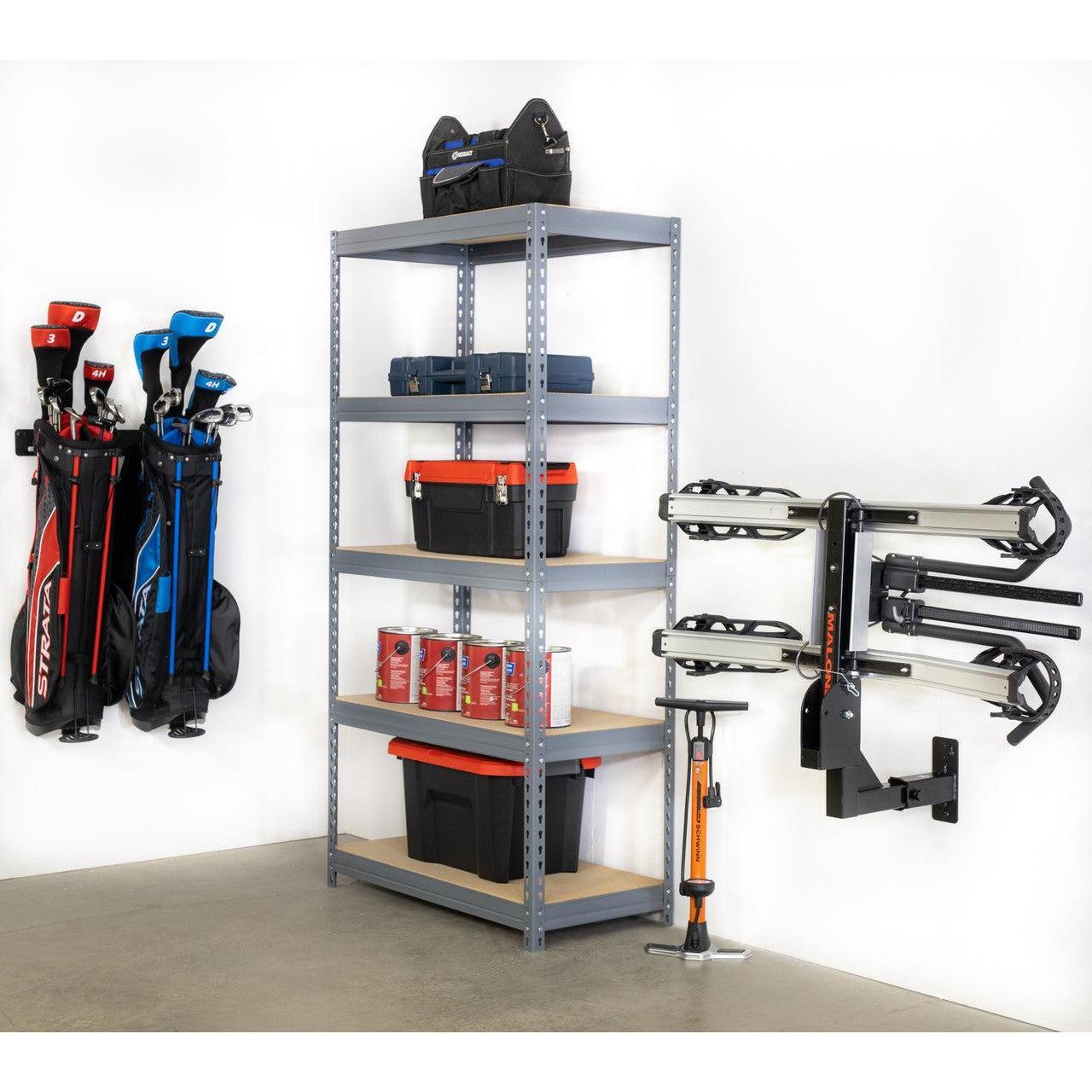 - Powerful wall-mounted hitch rack storage for garage organization