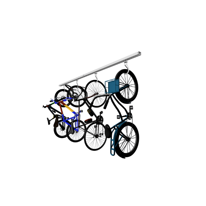 - Holds multiple bicycles securely overhead